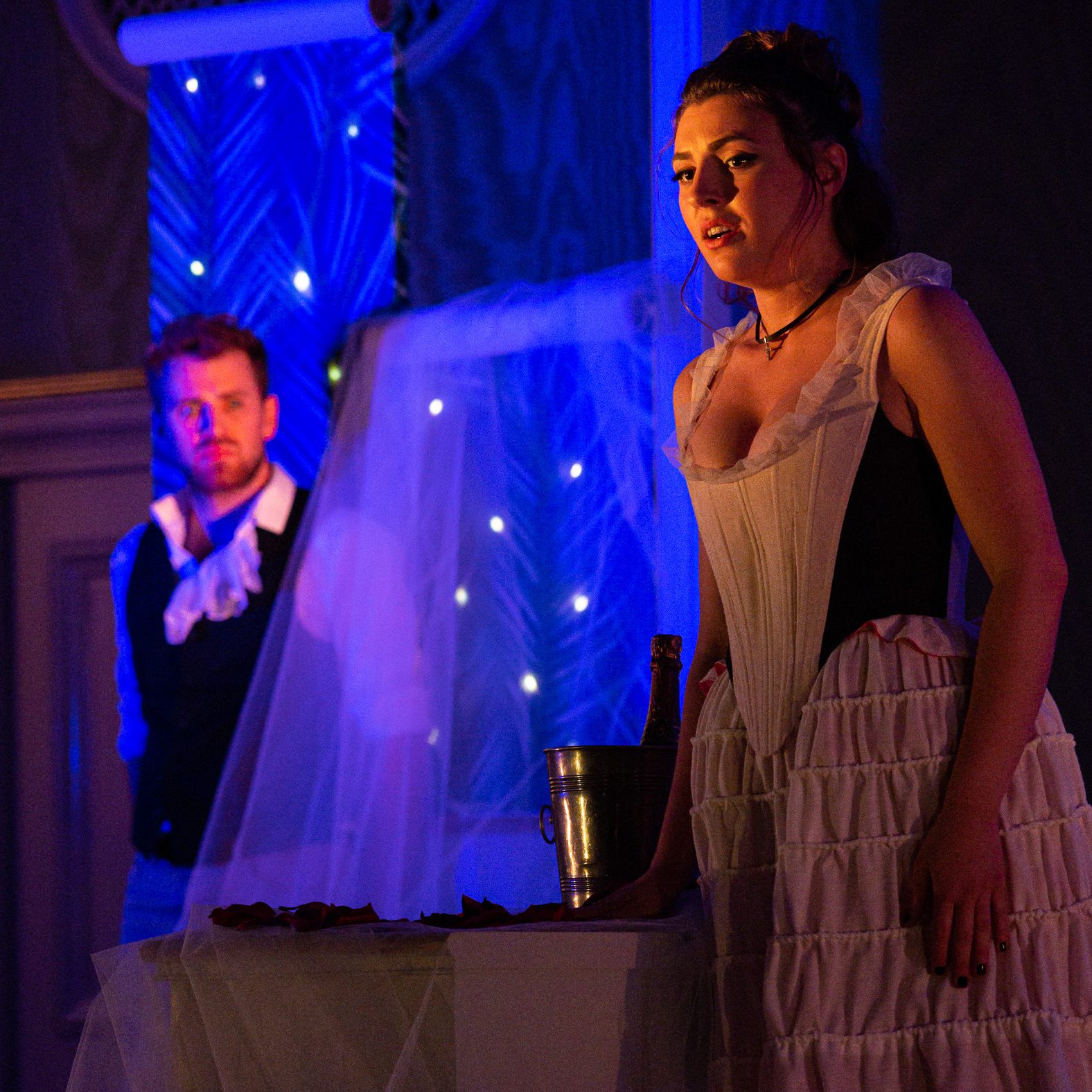 „A real discovery of the evening was the particularly cheeky Serpetta, sung by the soprano Elisabeth Freyhoff. Freyhoff was exceptionally committed and lively in every situation, with a bright soprano voice that is ideally suited to the coloratura and the cunning and cleverness of this chambermaid who wants to raise her social status by marrying her employer, the Podestà.“